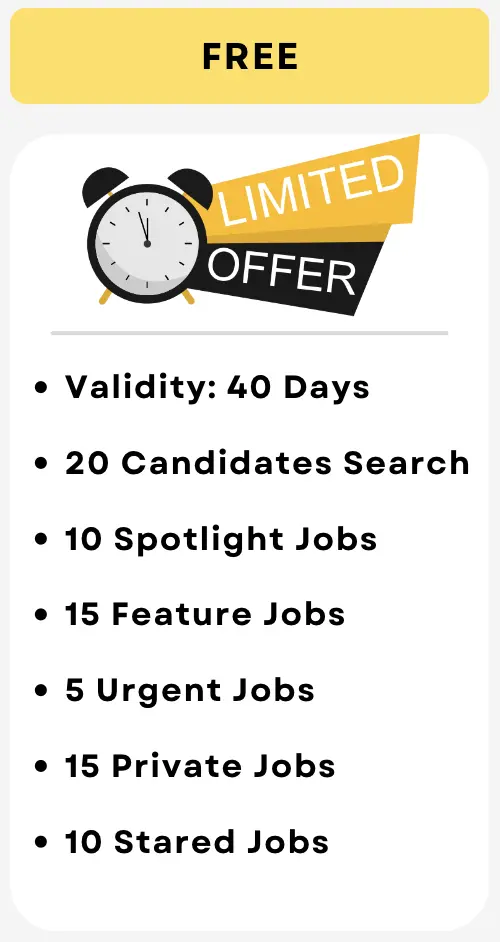 The Freemium Package offers a cost-effective way for employers to begin their recruitment process. This package allows you to post up to 15 featured jobs and 15 private jobs, providing a balanced approach to reaching a wide and selective audience. It also includes 10 spotlight jobs, 10 starred jobs, and 5 urgent jobs, allowing you to highlight key positions. With a 40-day expiry, the Freemium Package is an excellent starting point for businesses new to the BookMyDrones® platform. Best of all, this package is completely free, making it a risk-free option to try our services