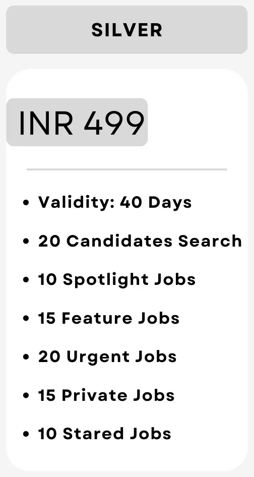 Priced at just ₹499, the Silver Package is perfect for small to medium-sized recruitment campaigns.